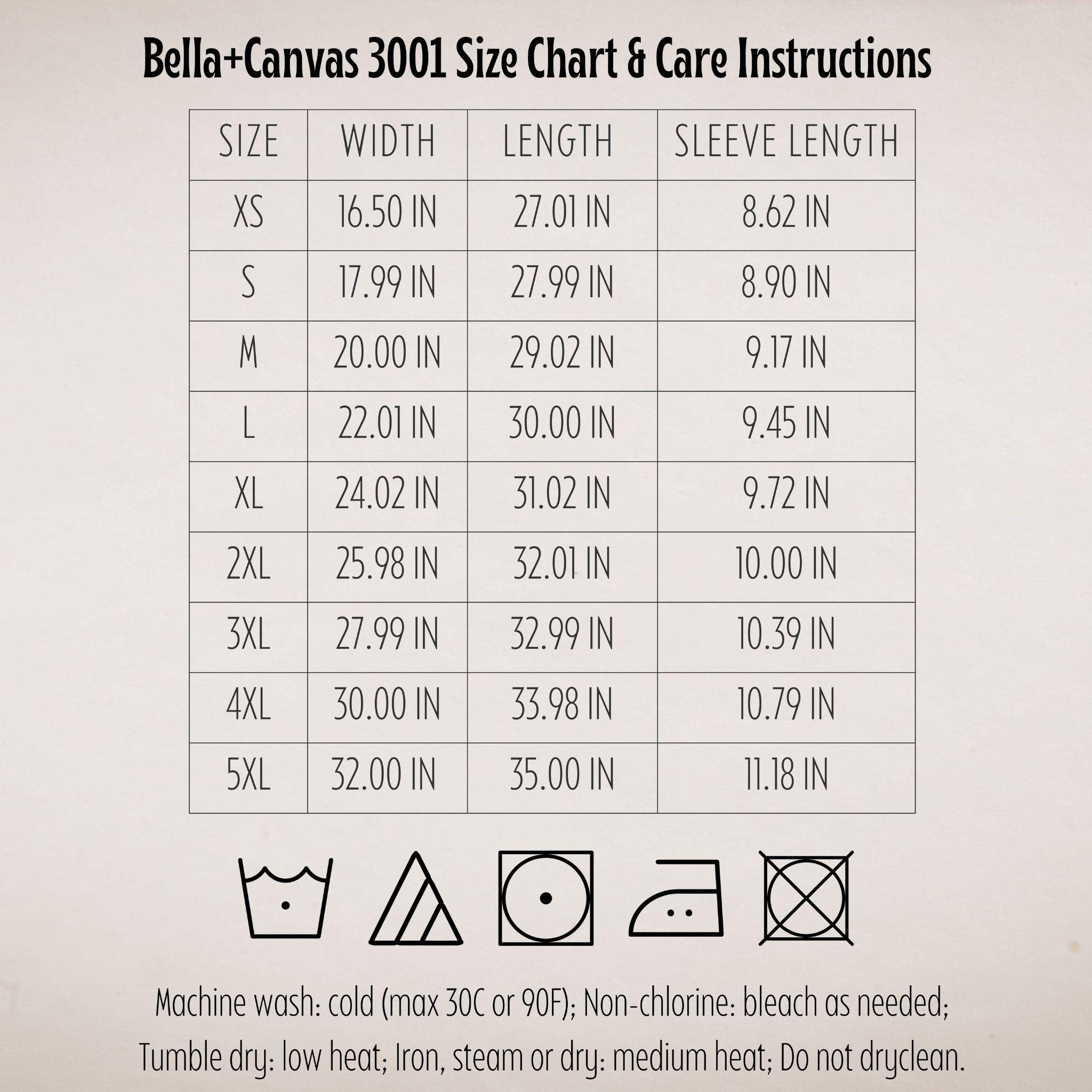 Product information: Bella+Canvas 3001, 2 year warranty in EU and Northern Ireland as per Directive 1999/44/EC