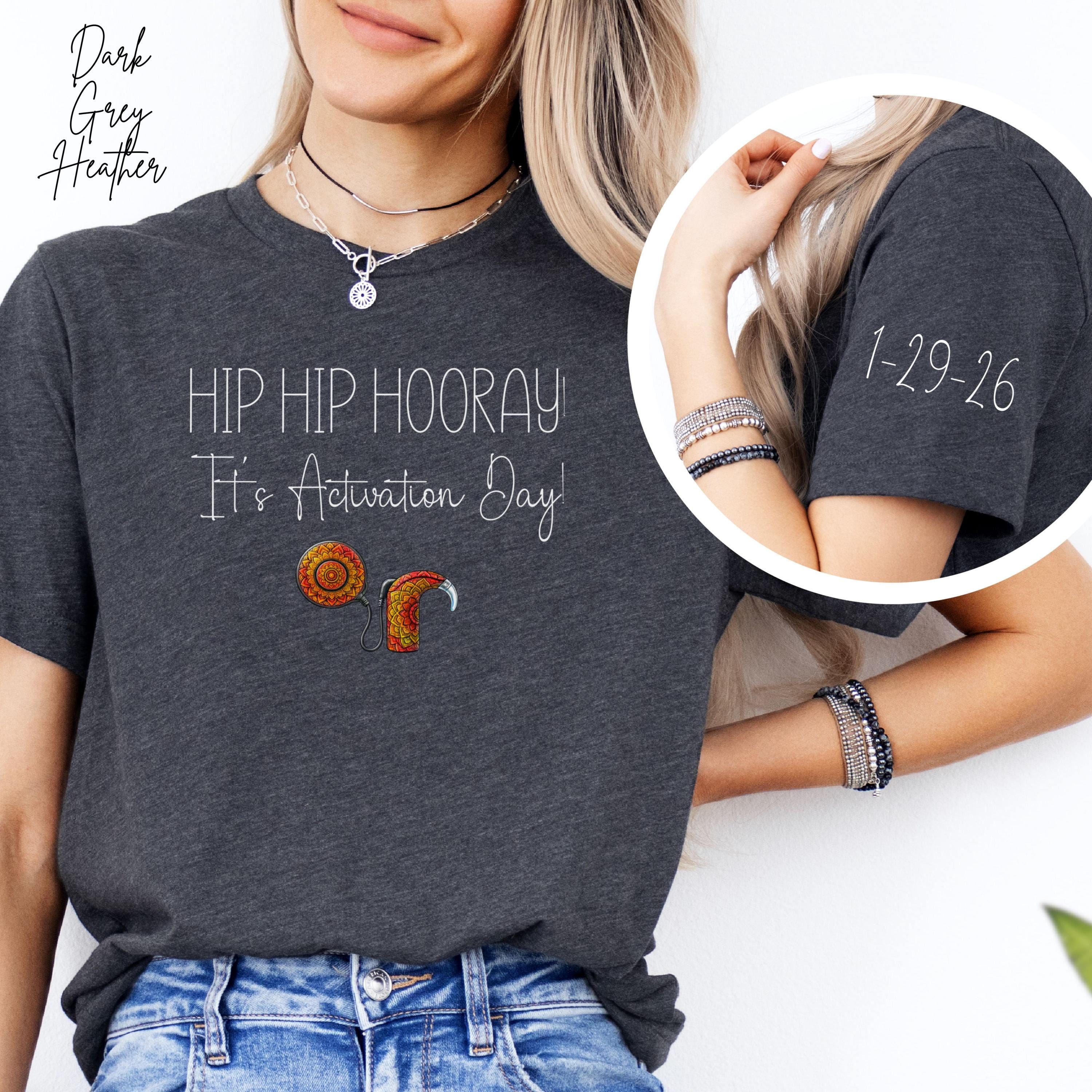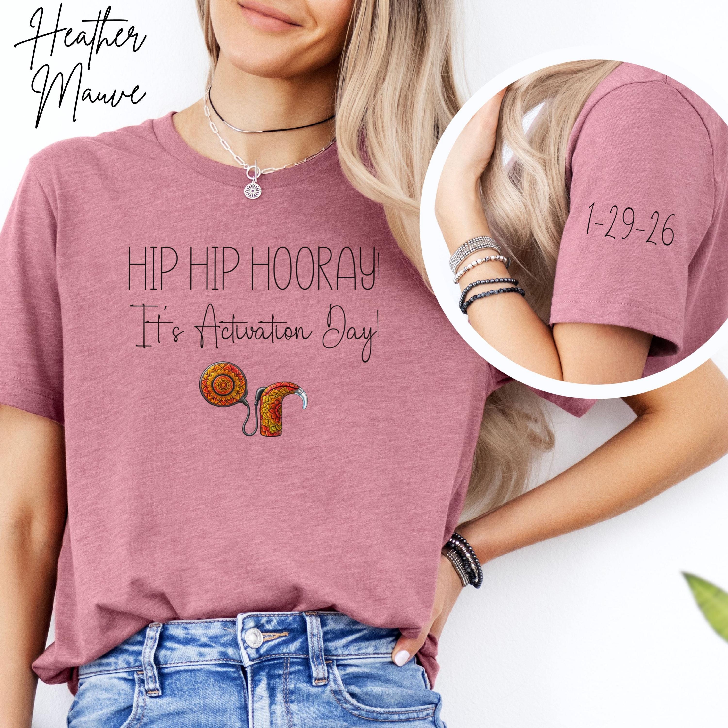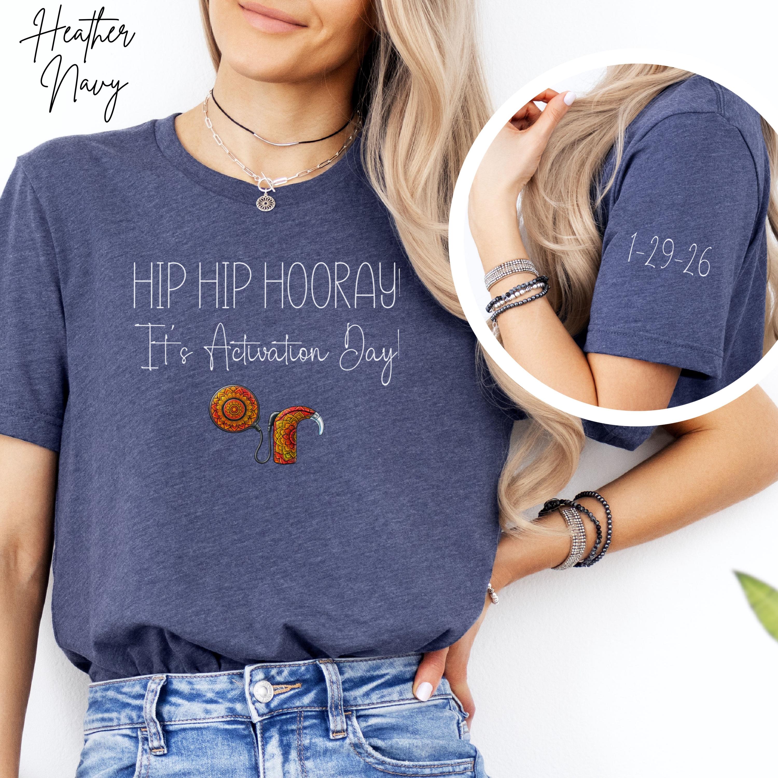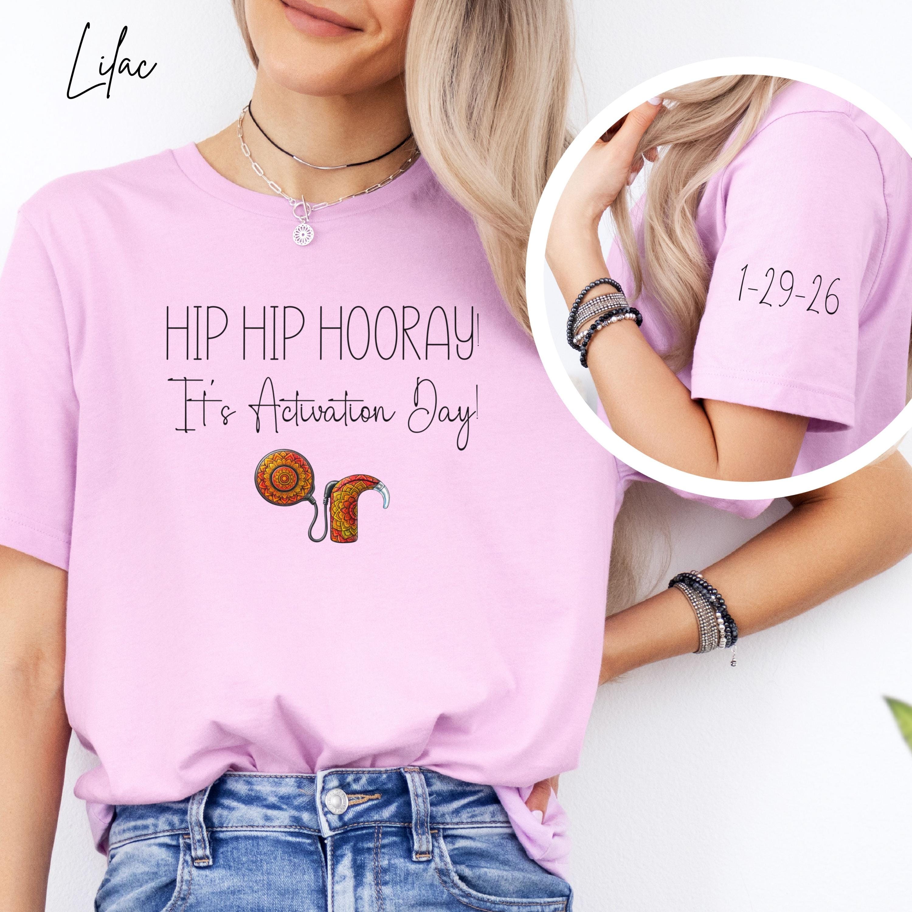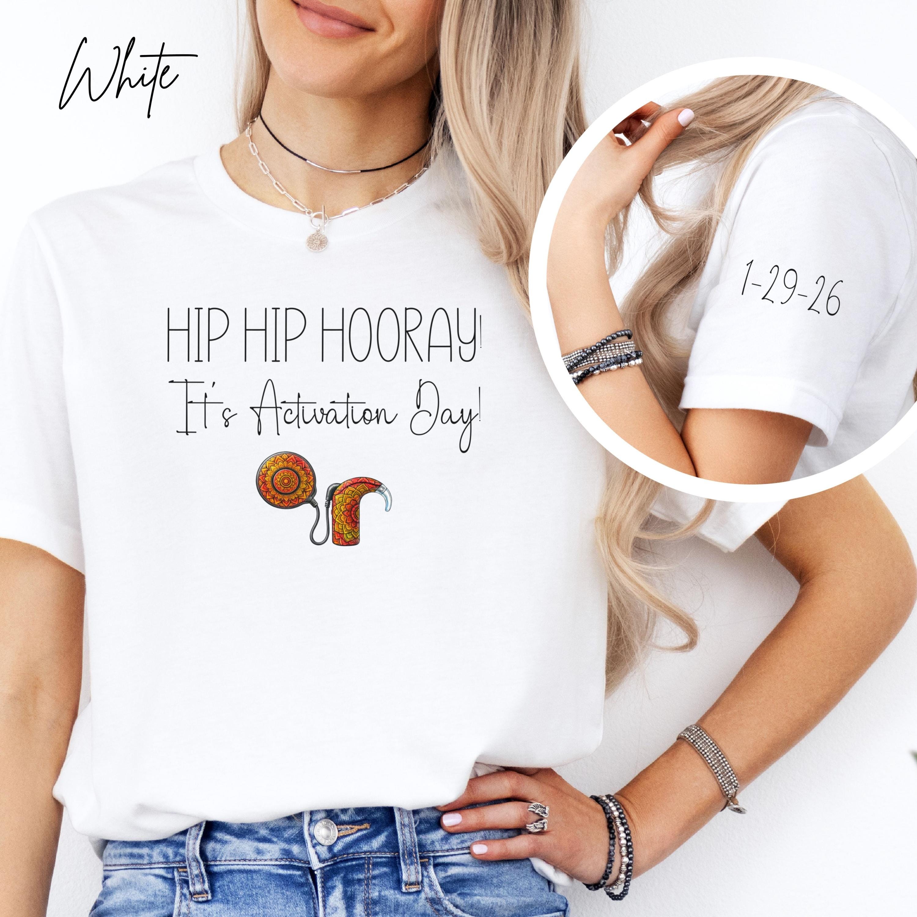 Celebrate one of the biggest moments in the cochlear journey with this cheerful **“Hip Hip Hooray! It’s Activation Day!”** T‑shirt. Designed with a vibrant cochlear implant graphic and a personalized activation date on the sleeve, this tee makes the milestone feel even more special.