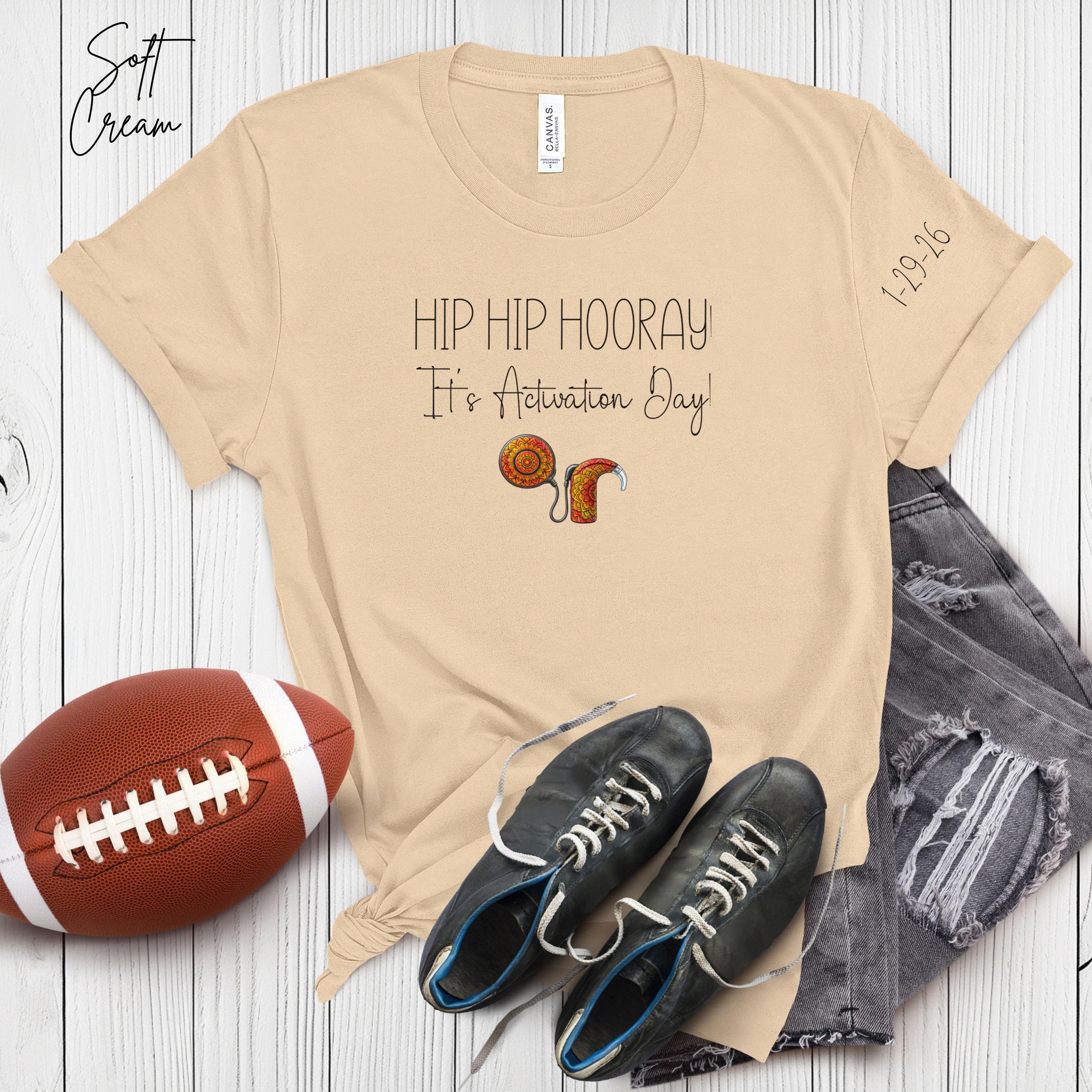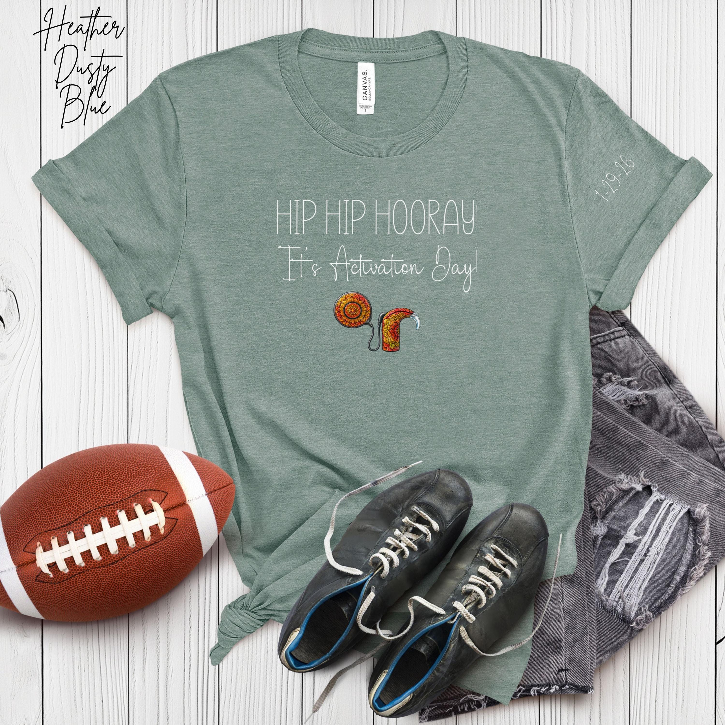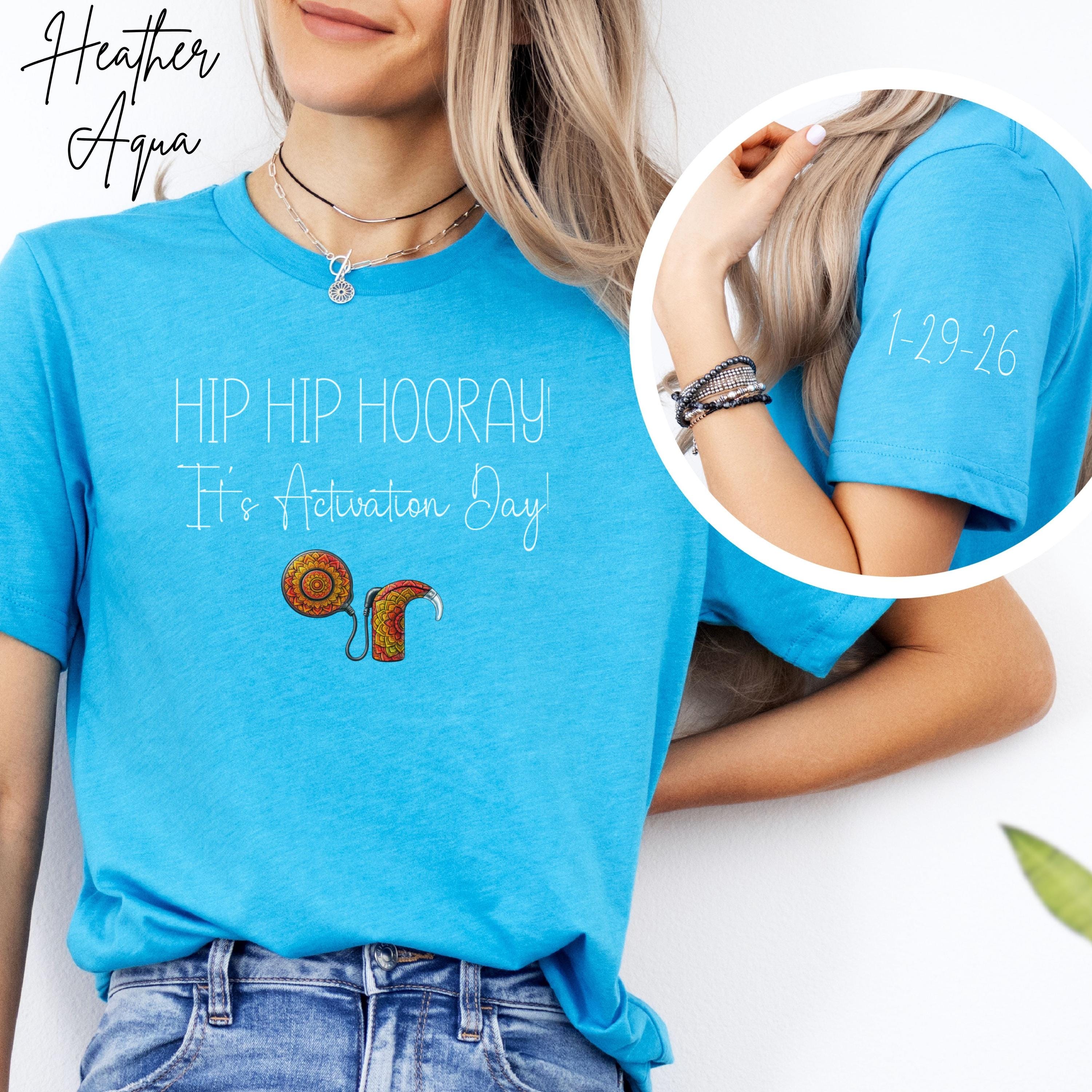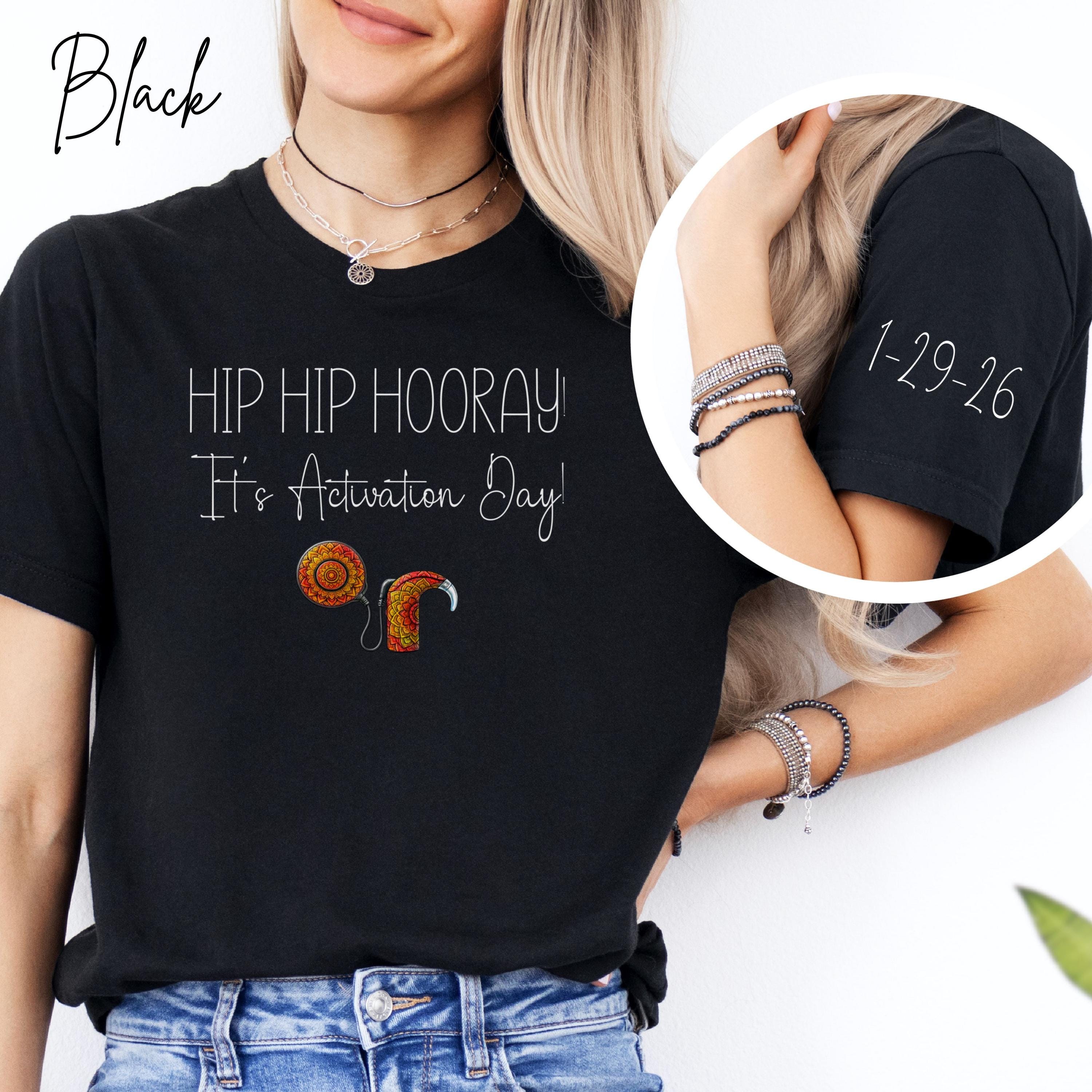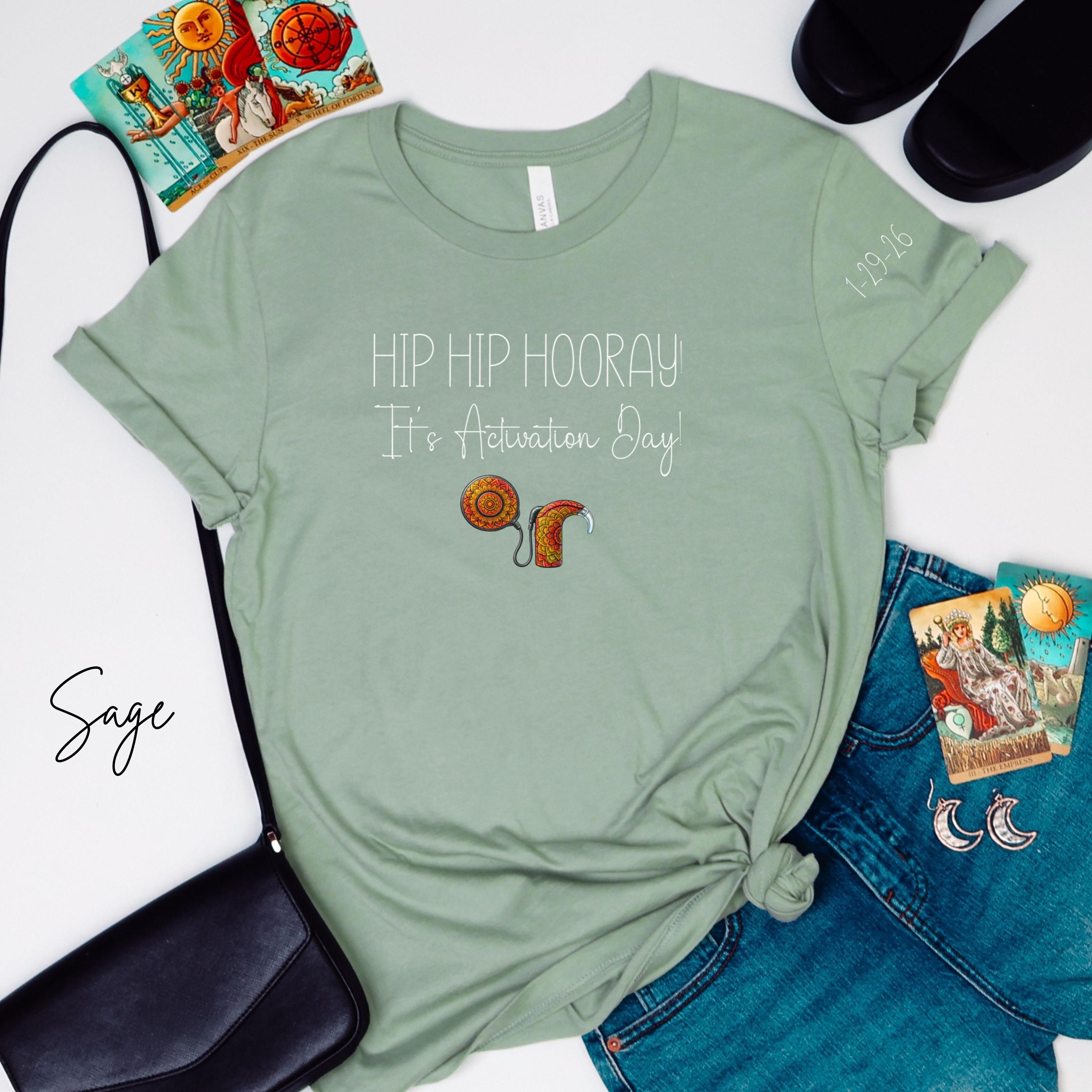 Celebrate one of the biggest moments in the cochlear journey with this cheerful **“Hip Hip Hooray! It’s Activation Day!”** T‑shirt. Designed with a vibrant cochlear implant graphic and a personalized activation date on the sleeve, this tee makes the milestone feel even more special.